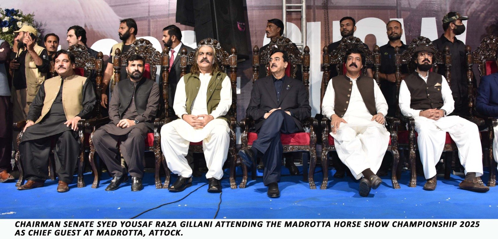 Chairman Senate  Syed Yousaf Raza Gilani, attended the Horse Riding Championship in Madrota, District Attock, as the Chief Guest. In his address on the occasion, Chairman Senate lauded the rich cultural heritage, bravery, and centuries-old equestrian traditions of the region, describing Madrotta as a land known for its valour, history, and deep-rooted association with the art of horse riding.