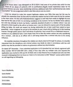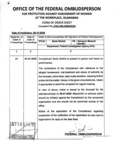 Sub-Inspector Farheen Murtaza has accused his senior officers of the Federal Investigation Agency (FIA) of harassment and discrimination. The case comes at a time when there was news of another harassment case in the FIA, in which DIG Humayun Masood Sindhu was removed from his post for allegedly harassing a woman Assistant Director, Sania Shahid.