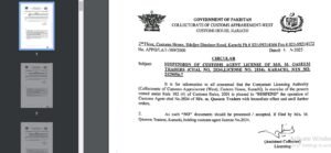 The special team proceeded to investigate the trial, leading to the arrest of three persons. Raids are in the process of apprehending other suspects. The Federal Board of Revenue (FBR) has also launched another case in jail against the other customs agents for their involvement together with the appraisers and a couple of private persons.
