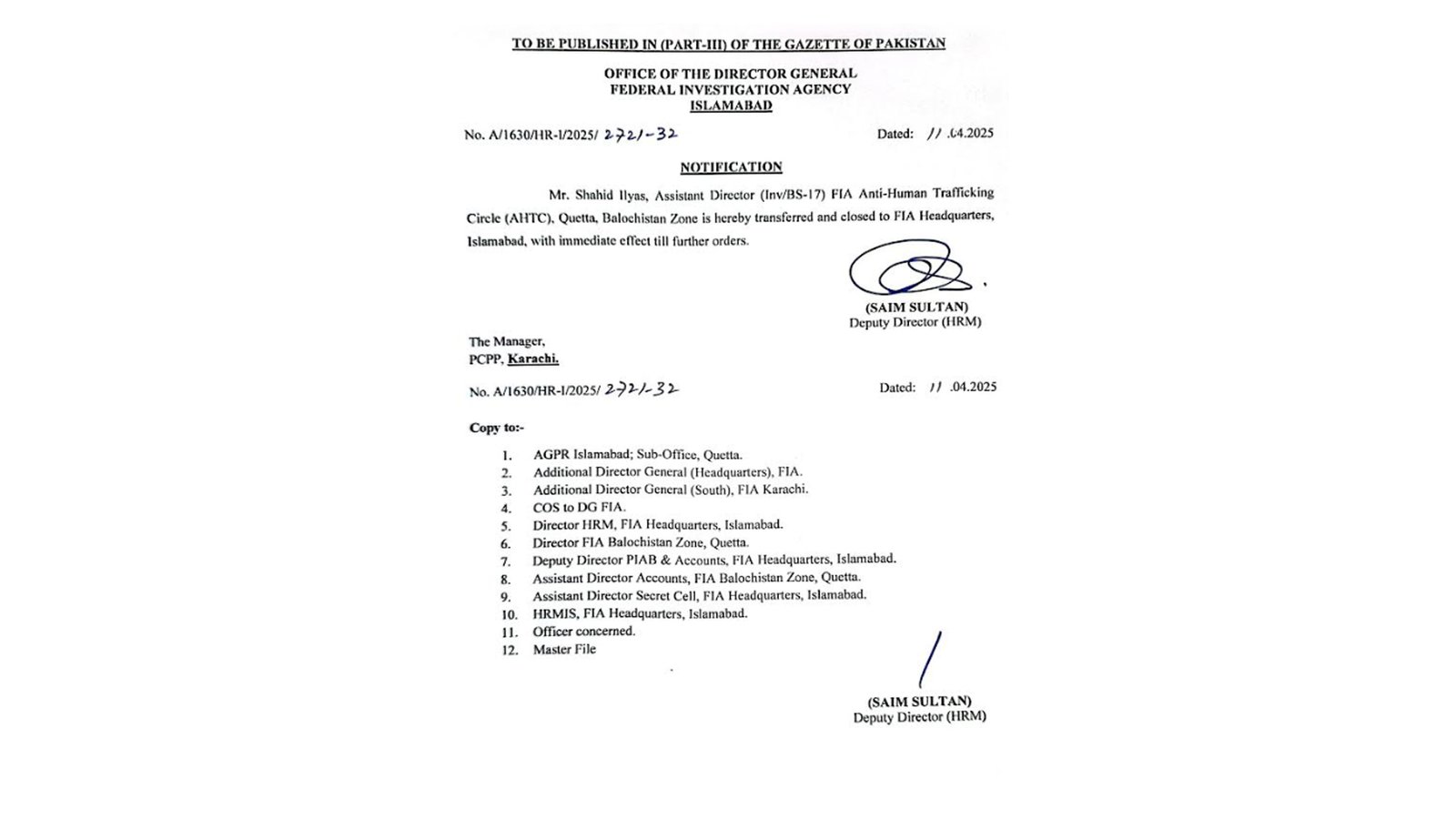 An intelligence agency, alarmed by the threats to his life following these arrests, recommended his transfer to Islamabad for his safety. Now stationed at the headquarters, the corrupt within FIA are terrified—fearing that their time may finally be up.