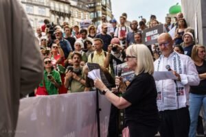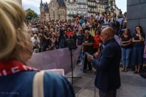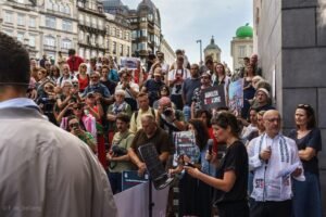 The demonstration, organized by the International Federation of Journalists (IFJ) and the European Federation of Journalists (EFJ), drew more than 400 people to Mont des Arts on August 26. Participants paid tribute to the 219 journalists who have lost their lives covering Israel’s ongoing assault on Gaza and called for a ceasefire and unrestricted access for foreign reporters to enter the enclave.