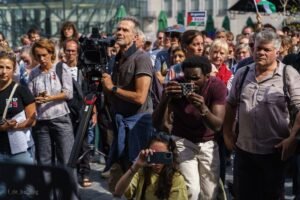 BRUSSELS – Hundreds of journalists, media workers, and citizens gathered in Brussels this week to honor Palestinian journalists killed in Gaza and to demand an immediate end to what unions and advocates have called the “deliberate targeting” of the press.