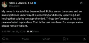 Thieves have broken into the house of Pakistan’s famous actor, singer, and host Fakhar Alam in Karachi. The actor gave this sad news on the micro-blogging website X and said, “My house in Karachi has been robbed, the police are at the scene and the investigation into the incident is ongoing.”